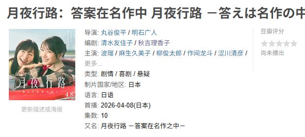 在旅途中,她们不仅卷入了一起谋杀事件,还凭借夏目漱石、太宰治、江户川乱步等经典文学知识,逐步解开谜团,也体悟到了生活的智慧与文学的力量。