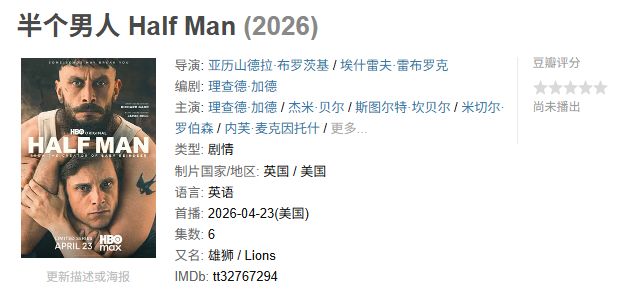 BBC与HBO联合出品的6集迷你剧,看点在于这是《驯鹿宝贝》主创理查德·加德的最新力作,他与杰米·贝尔共同主演。