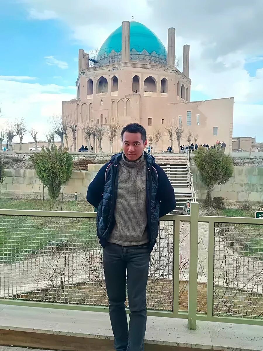 印权斌在伊朗赞詹省的苏丹尼叶城穹顶前(受访者 供图)
