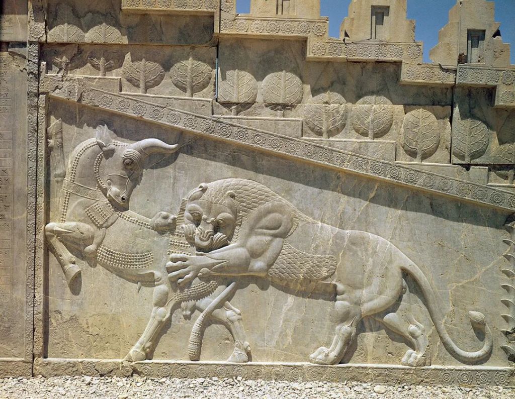 波斯波利斯遗址的着名浮雕“狮子咬牛”(图源:视觉中国
