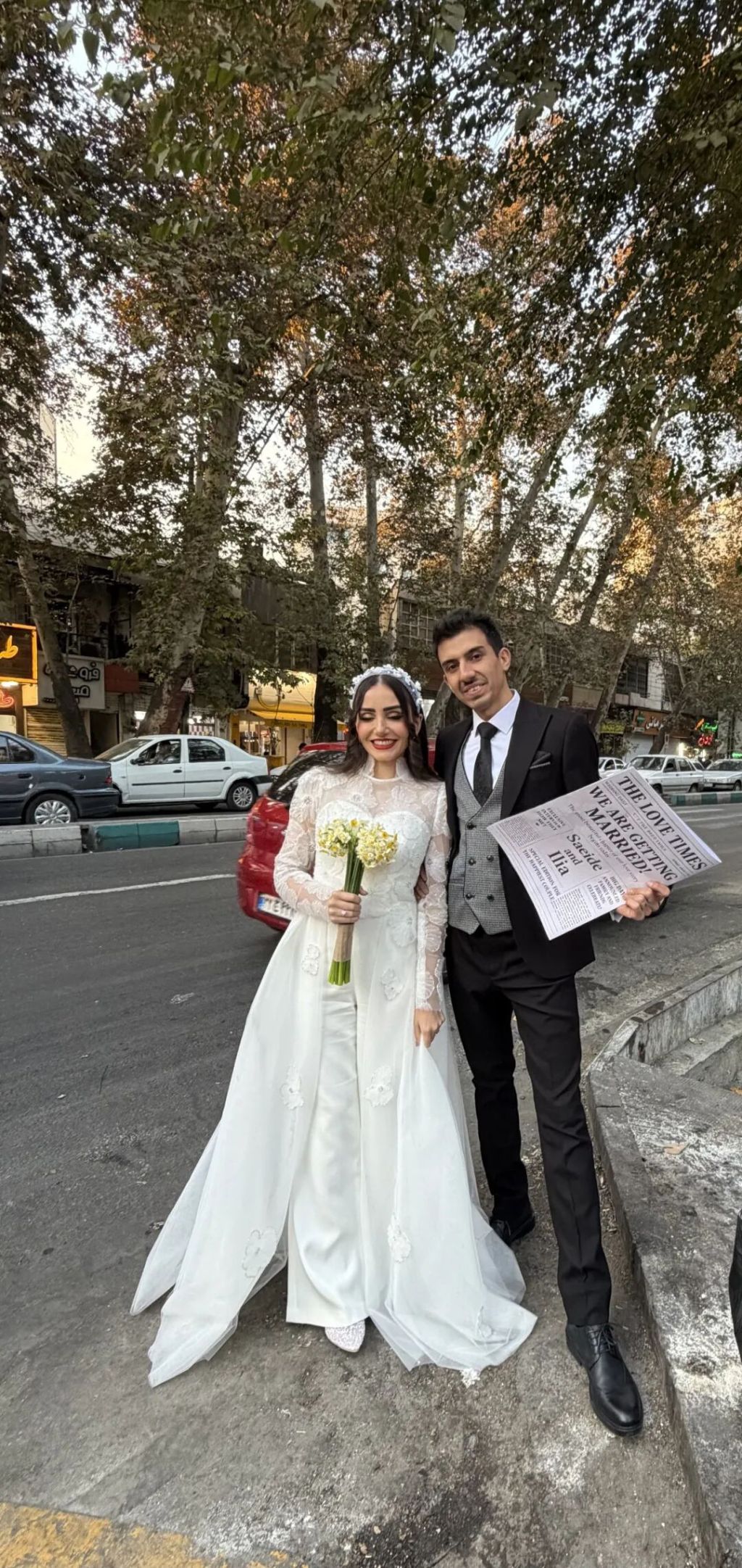 2025年秋天,德黑兰街头的新婚夫妇在拍摄婚纱照(受访者供图)