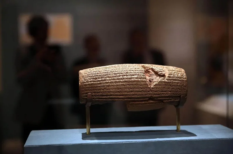 2013年6月20日,“居鲁士圆柱”在美国纽约(专题)大都会艺术博物馆展出。圆柱上的铭文曾被巴列维国王称为“世界上最早的人权宣言”(图源:视觉中国