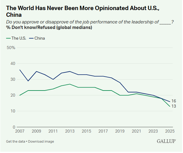 盖洛普民调:中国全球支持率超美国 创最大差距