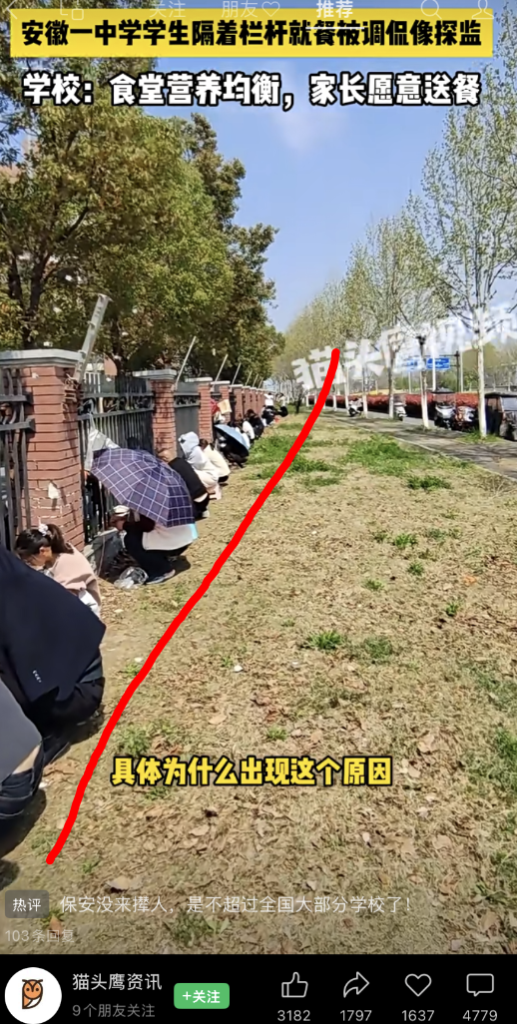 这里我得夸一句这所中学,据说他们的表态是,不希望家长们进学校,怕有特殊情况发生。但既不会驱赶,也不会刁难,反而还会在学生吃完后清理区域内的垃圾,保证卫生。