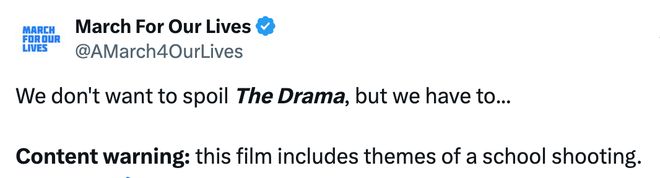 致力于终结枪支暴力的青年组织“为我们的生命游行”也在社交媒体上发布了预警,并批评片方未能尽到提醒观众的责任。