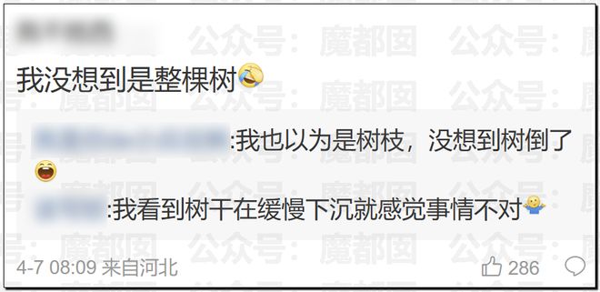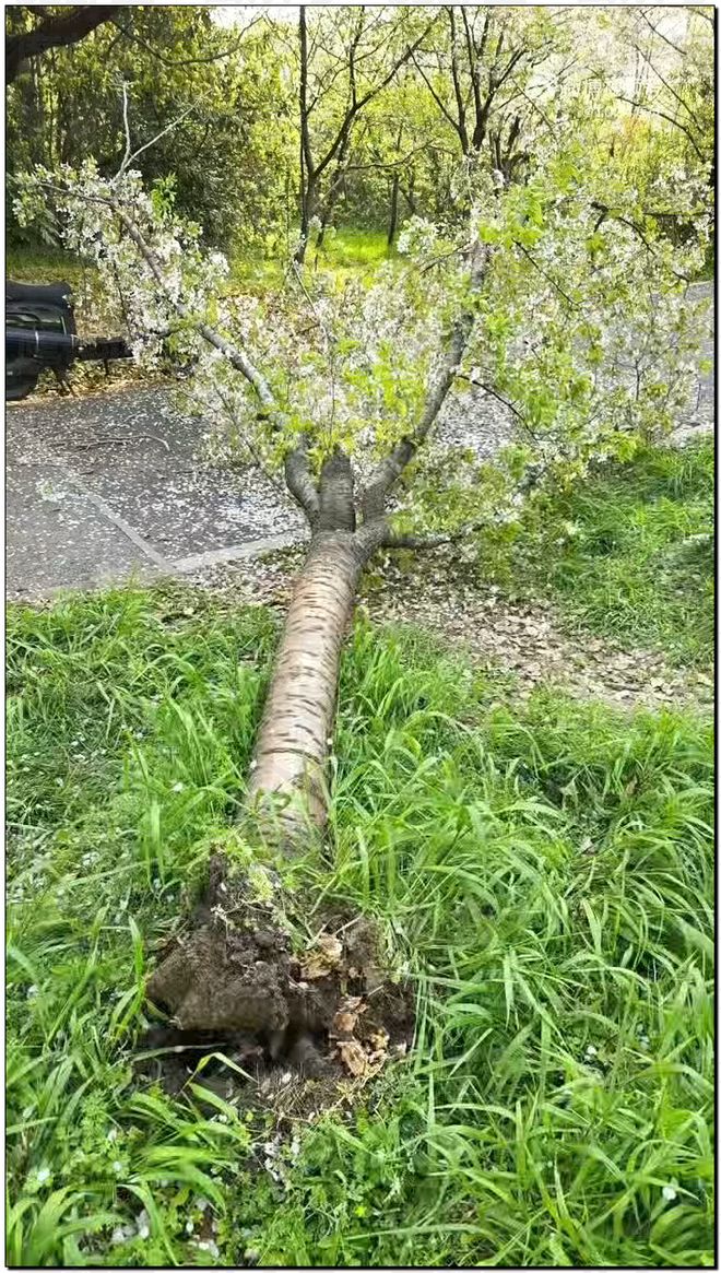 这棵树肉眼可见的大角度倾斜,然后……倒了……