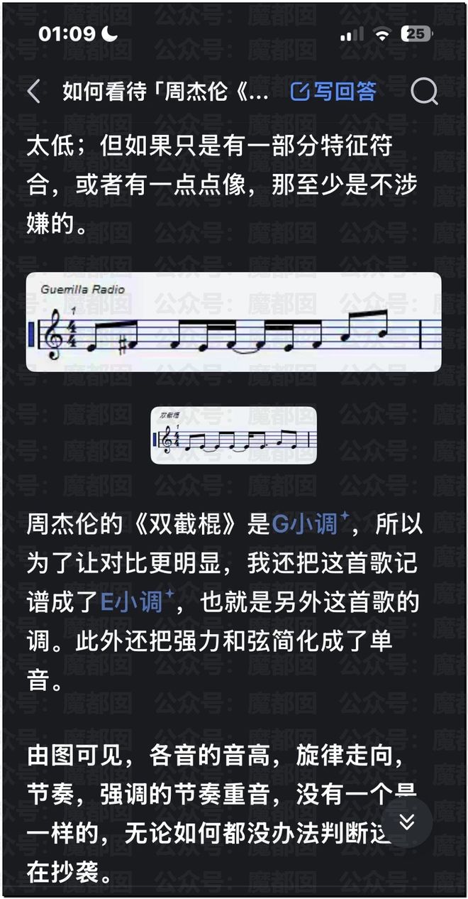 之前就有人扒谱,认为从法律上认定抄袭比较难: