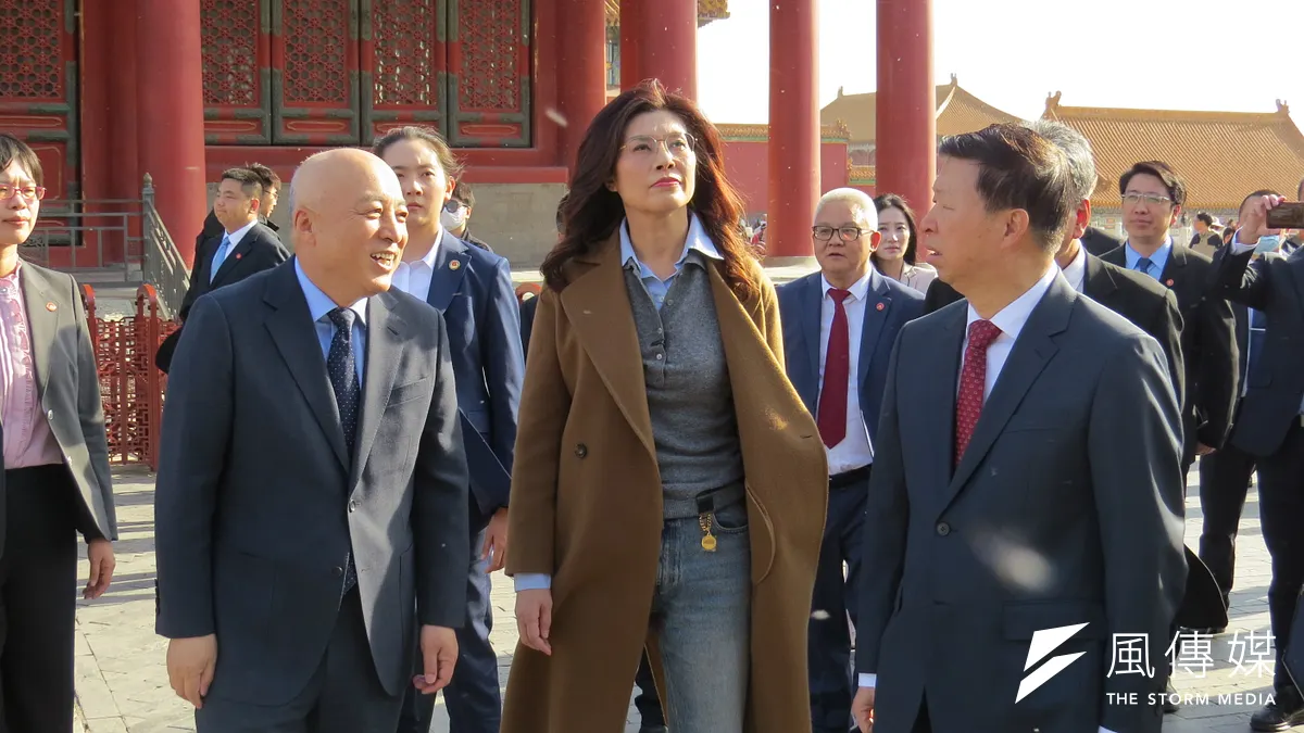 鄭麗文訪問大陸行程進入尾聲,11日來到北京故宮博物院參訪,包括國台辦主任宋濤、北京故宮博物院院長王旭東到場陪同。