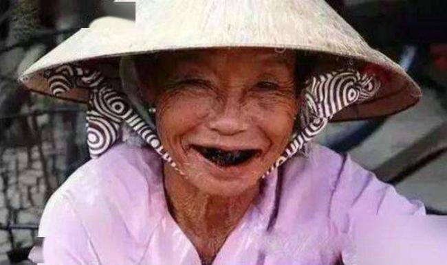 還有像這樣人到晚年,牙齒被腐蝕成黑渣的老太太。