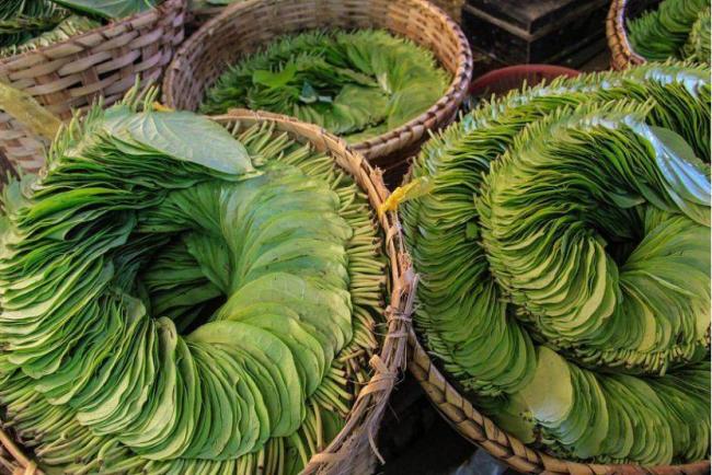 只有號稱“毒品大國”的緬甸,本地“檳榔”會被包裹在這種葉子裡售賣,在大街小巷隨處可見。