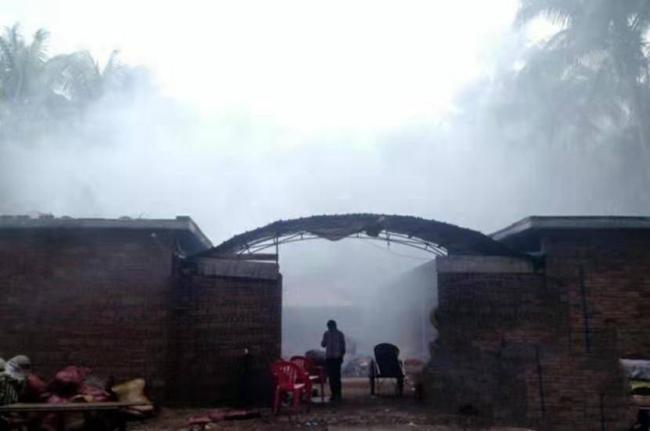 熏制檳榔的車間不堪入目:屋頂四壁焦黑。