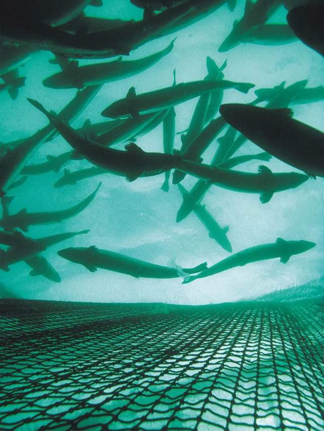 问题是,养殖三文鱼是把鱼群圈养在沉入海里的网箱,里面的三文鱼不说是摩肩接踵,那也得是水泄不通,春运的火车站跟这一比都算是仙境福地了。