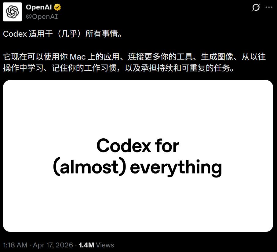 你的電腦長出了第二個光標了!OpenAI重磅更新Codex,AI能在後台自己開模擬器、修Bug,完全不耽誤你前台工作。一代「賽博牛馬」正式覺醒。