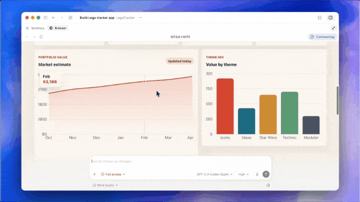 Codex能理解視覺和空間上下文,後台即時修改代碼,頁面實時刷新。