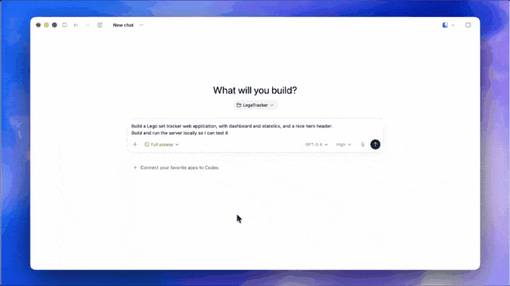 Codex從零開始寫完代碼、配好環境、啟動本地服務器,然後在內置瀏覽器裡打開了渲染好的頁面。整個過程就幾秒鍾。