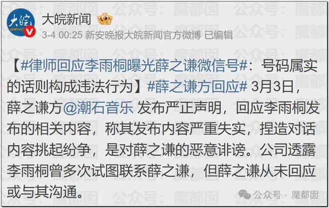 而對於李雨桐造謠、侮辱、誹謗等行為,薛之謙方將視後續情況,保留采取一切合法手段追究其法律責任的權利,以維護自身合法權益。(還沒完,會根據後續的事態發展保留進一步追究的權利)