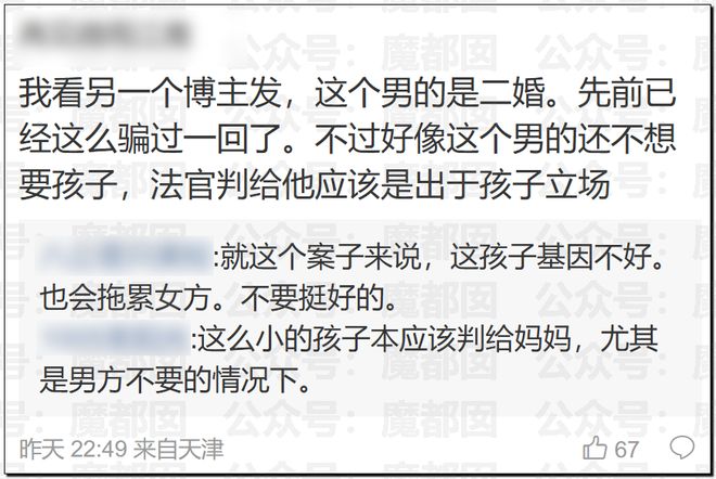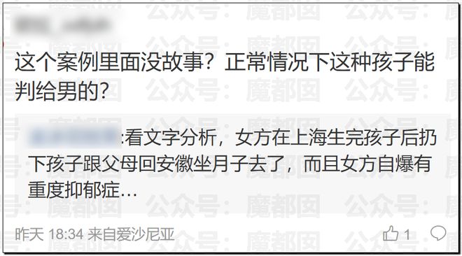 有網友尖銳的指出:這個案例很有意思,不是說少,而是之前這類案例因為擔心模仿很少能被全公布上熱搜。非婚生育女富男窮一般寫沒問題的,但是男富女窮,不肯領結婚證然後女孩子沒辦法只能放棄孩子撫養權的案例之前都不怎麼放出來的。