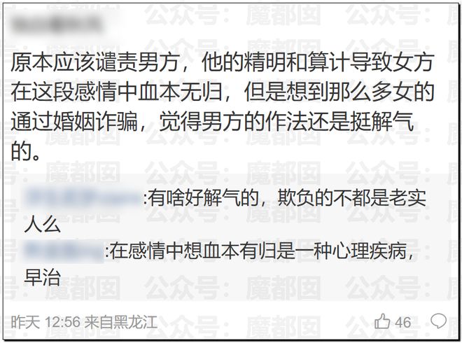 網友們嘩然。很多網友指責女方本質上是利用婚姻和孩子敲詐男方,沒想到被男方識破沒有得逞: