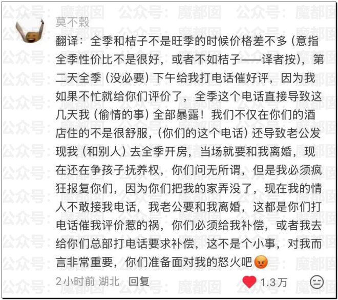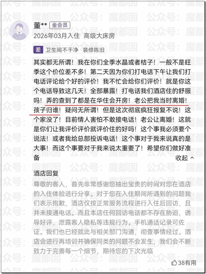 當然,我們都清楚的知道導致她離婚的原因和酒店無關。但是酒店的這種惡心人的回訪機制多位網友表示的確存在。網友解讀: