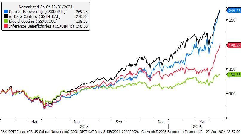 半導體、服務器、網絡設備和數據中心設備這條產業鏈,仍然最直接跟隨大廠投入走。近期軟件和芯片已走出分化,說明市場在這條主線裡開始向離訂單和基礎設施更近的方向聚集。若四家財報繼續確認需求和資本開支強度,這種分化只會更明顯。