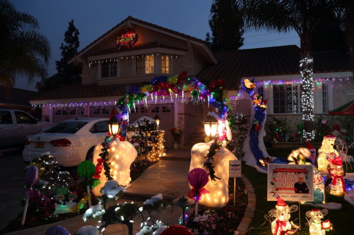 圣诞节即来降临,美国家家户户张灯结彩,好不热闹,年年如此,岁岁相同,2012年的灾难时刻也没有带来任何异样,各家各户仍然是五彩缤纷,霓虹闪烁-----