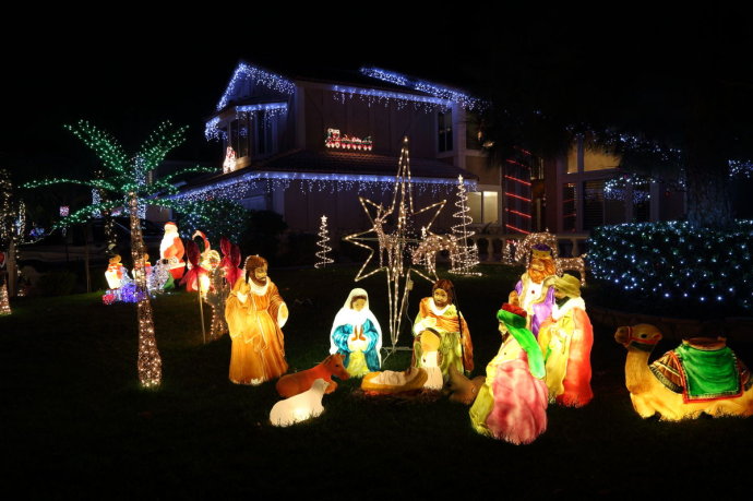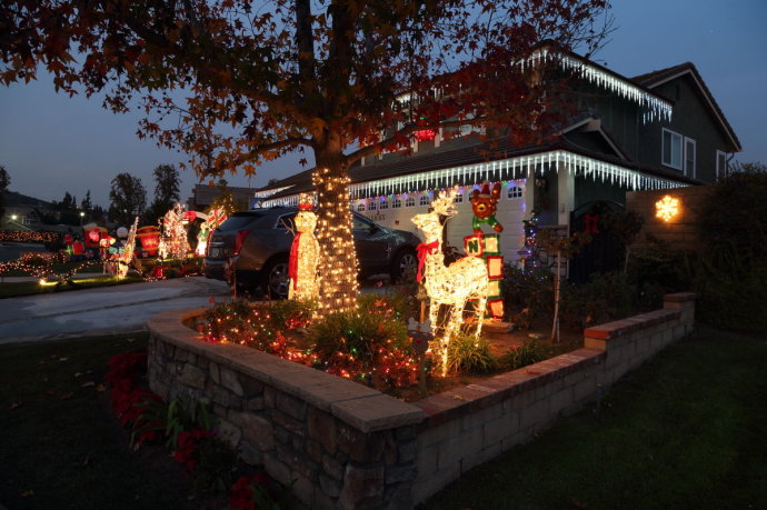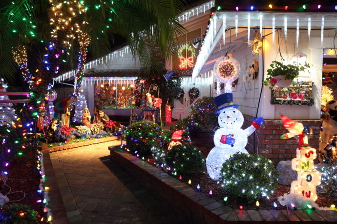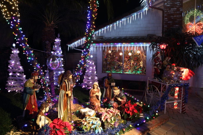 圣诞节即来降临,美国家家户户张灯结彩,好不热闹,年年如此,岁岁相同,2012年的灾难时刻也没有带来任何异样,各家各户仍然是五彩缤纷,霓虹闪烁-----