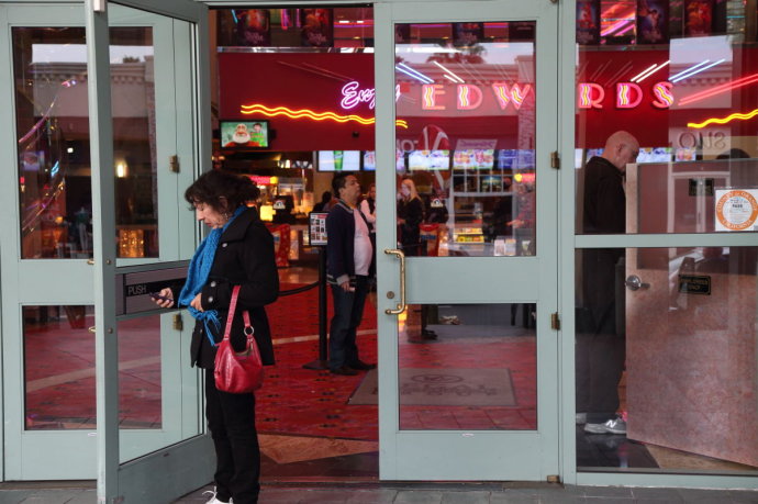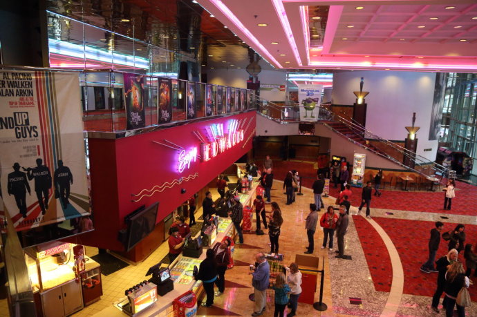 夜幕降临,电影院是最热闹的地方
