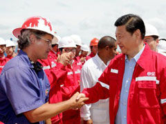 习近平在中石油项目工地与员工握手2011年6月 访问古巴