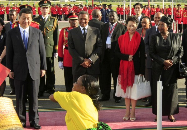 当地时间3月25日,习近平一行离开坦桑尼亚前往南非,坦总统在机场送别
