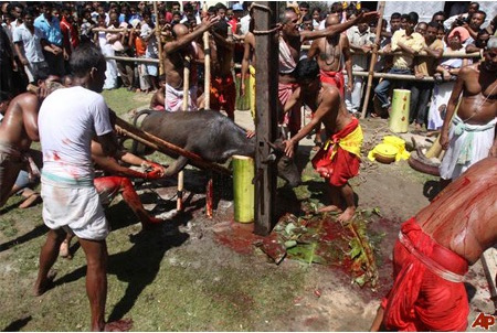 印度、印度尼西亚和尼泊尔:屠宰牲畜祭神
