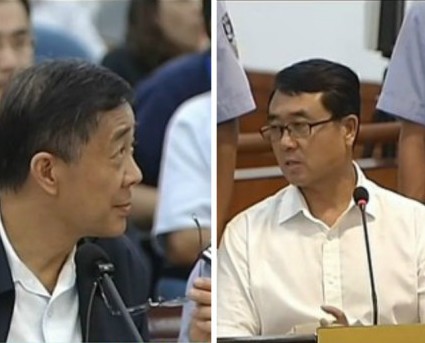 8月24日下午,济南中院调查薄熙来滥用职权指控,原重庆公安局长王立军出庭作证。被告席的薄熙来与证人席的王立军眼神交汇。