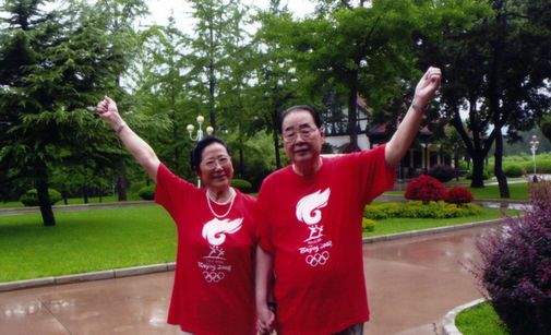李鹏、朱琳夫妇,2008年8月8日晚上8点08分在北戴河祝奥运成功。