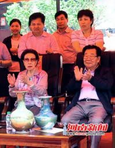 吴官正夫人张锦裳,据张锦裳《我与吴官正风雨五十年》一书中披露,张锦裳于1956年考取鄱阳中学,与吴官正是同学。1959年与吴官正结婚。图为2013年9月23日,吴官正夫人张锦裳女士、之子吴少华向“清华大学昱鸿助学金”捐赠部分稿酬。