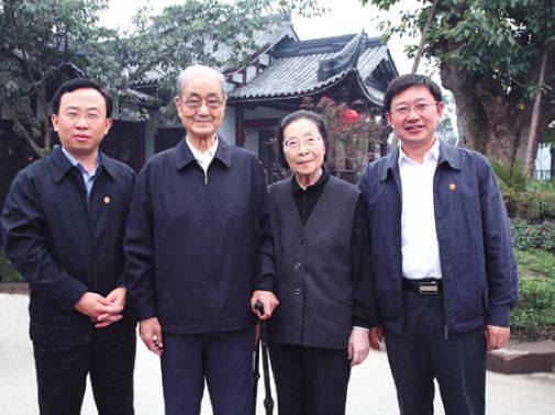 2006年10月20日,宋平携夫人陈舜瑶参观黄龙溪古镇留影。