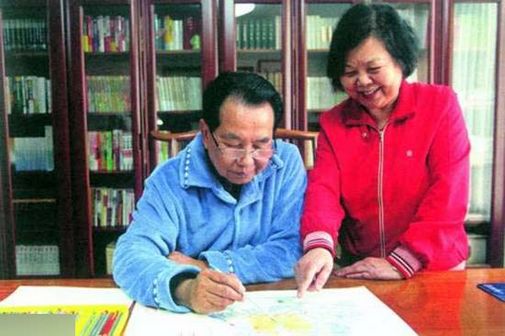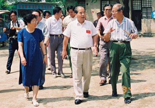 尉健行夫人的张勖华。图为1994年6月27日,尉健行与夫人张勖华在西柏坡。