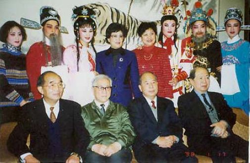 1998年1月17日,尉健行(前排右二)与夫人张勖华(后排左四)在北京长安大戏院观看《貂蝉与吕布》后,与主要演员合影。