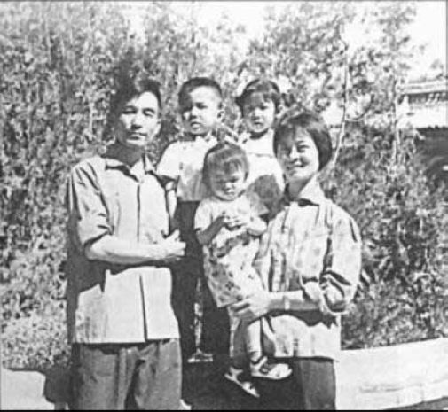 温家宝之妻张培莉,曾就读于兰州大学地质地理系毕业,后为中国著名地质学家;现为中国珠宝协会副主席、中国宝玉石鉴定委员会主任、国家珠宝检验中心主任等职务,戴梦得珠宝董事长。图为1974年,温家宝与妻子张培莉、儿女在甘肃酒泉合影,张培莉怀抱着温家宝好友陈延京的大女儿。