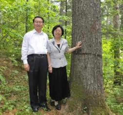 李长春夫人张淑英,毕业于哈尔滨工业大学。图为2010年6月,在上甘岭溪水国家森林公园,李长春与夫人张淑荣认领了一株红松。