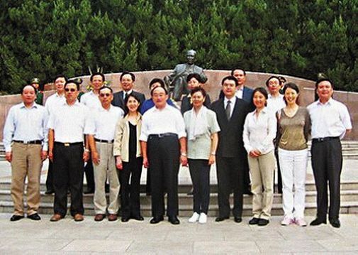 王岐山夫人姚明珊。王岐山在延安劳动时期与同为北京知青的姚明珊相恋,后结为夫妇。姚明珊现已退休。图为姚明珊(前排右5)2006年回安徽祭祖时,当地多名官员陪伴。
