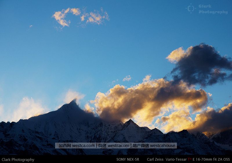 梅里的变化神秘莫测,果然是凡人难以度测的。接近黄昏,大量的云从山头散去,梅里终于露出了真容。