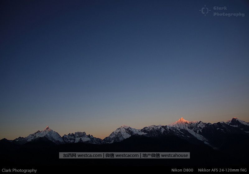 昨看到的是云雾中的日照金山,是一番滋味,而今天万里无云的晴朗天空下,看日照金山,又是另一番味道。