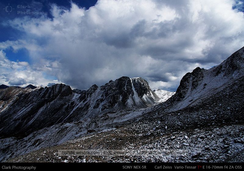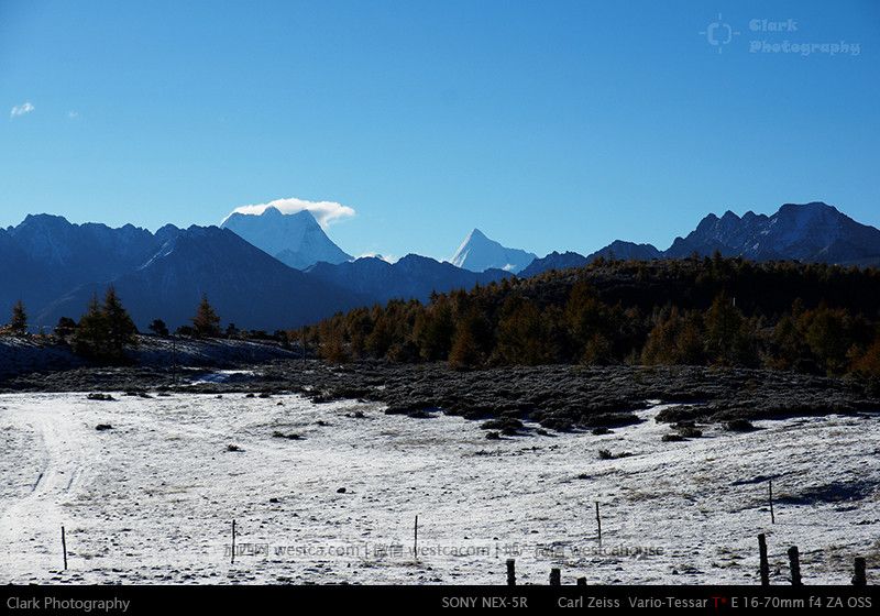 从小香格里拉出来,走鹅初山方向,爬到鹅初山顶时,看见了白色的时间,蓝白相得益彰,美不盛收。在鹅初山上,也还可以看到仙乃日和央迈勇,又是另一种形状。