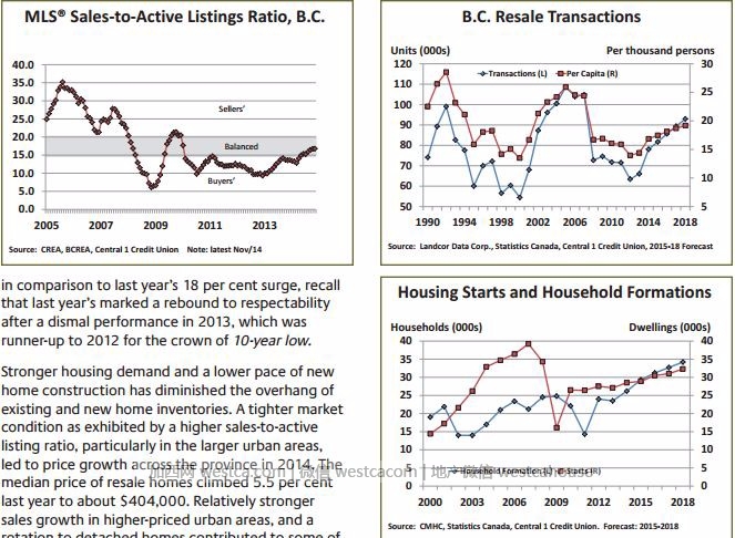 就是这份:中央第一信贷( Central 1 Credit Union)说BC省房地产市场自2014年显示出强大的上涨势头后,在紧接着的几年价格将迎来再次上扬。