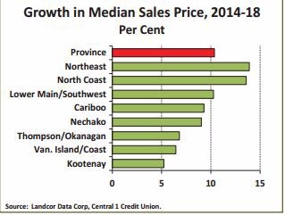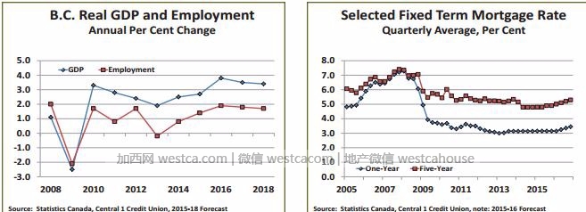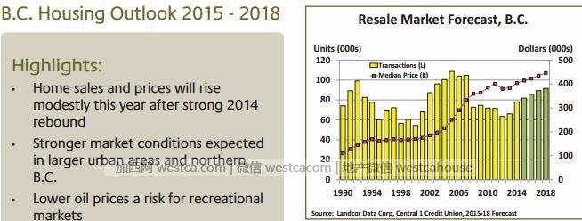 在中央第一信贷发布的《卑诗楼房展望》(The BC House Outlook)中预测在2016年乃至今后几年内,房屋价格和销量都不会下跌, 在2018年前至少上涨2个百分点。