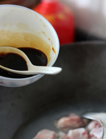 4.加入糖醋汁(一汤匙米酒,两汤匙酱油,三汤匙白糖,四汤匙醋)。