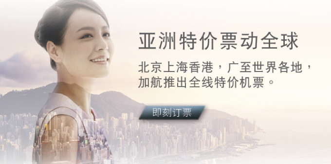 北京上海香港,广至世界各地,加航推出全线特价机票。优惠截止日期: 2015年年4月22日