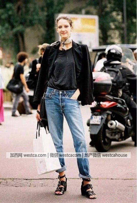 4.黑色修身小西装+BoyFriend风牛仔裤