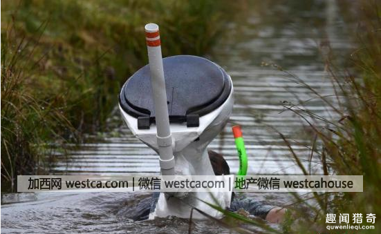 还有参赛者背着小船造型的潜水设备,看着很有喜感。而且,竟然还有人背着马桶造型的潜水设备,让人看了不禁哈哈大笑。