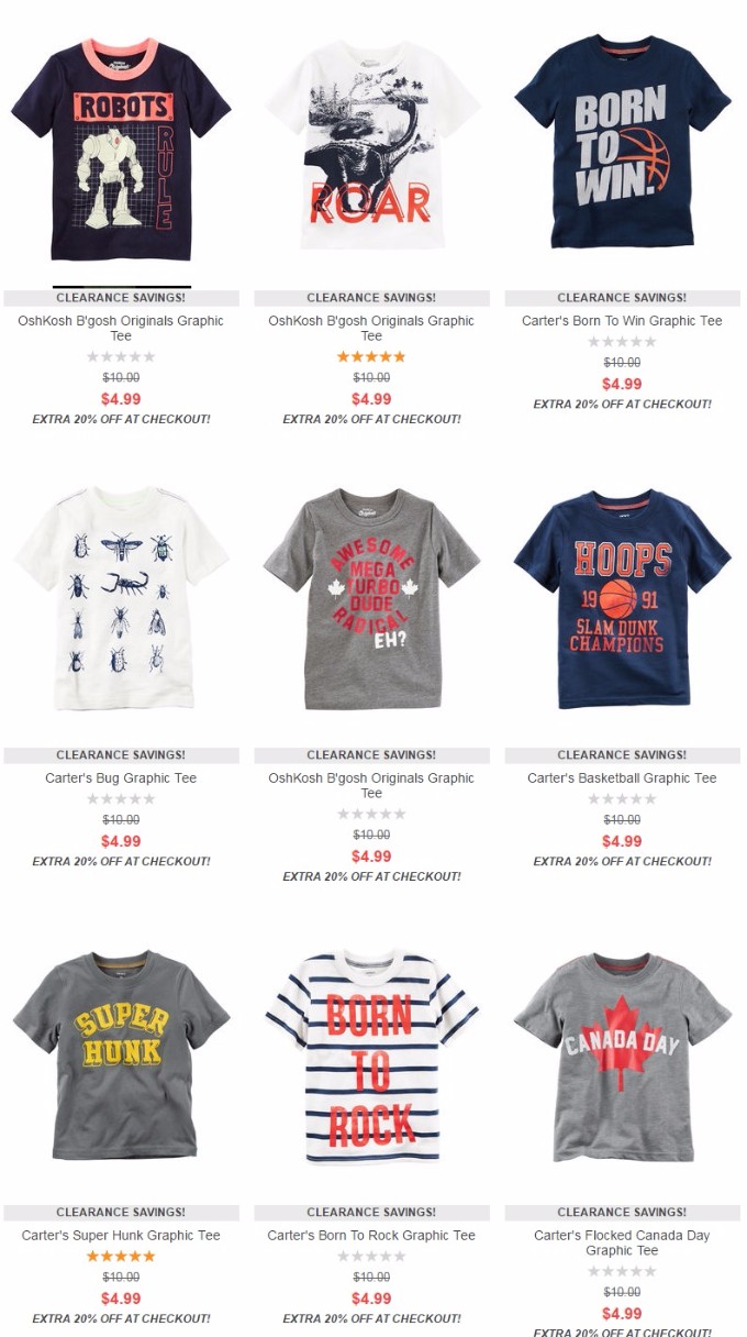 Carters canada 慶國慶全場額外8折促銷熱賣 +買滿$50減$10,需使用優惠碼"CAOK51417 "。