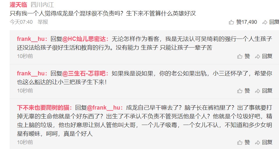 不知道成龍看到這則消息,心裡會不會產生波瀾。